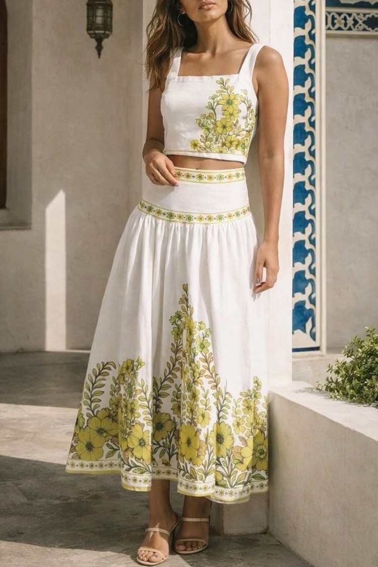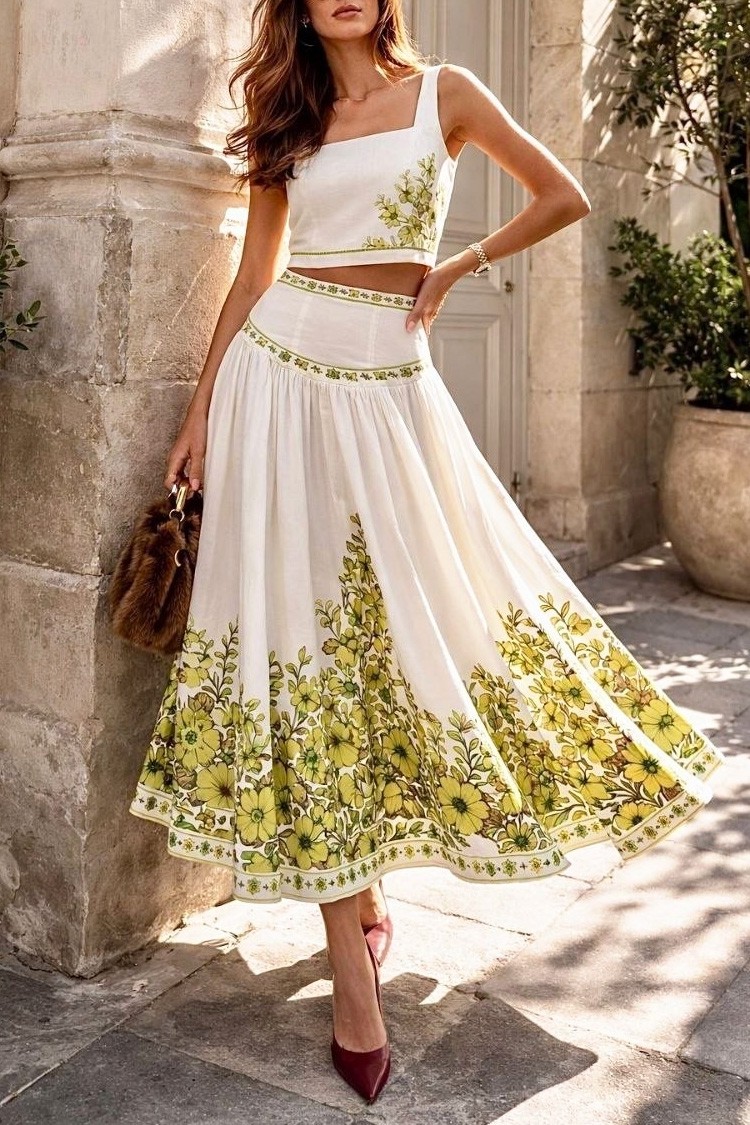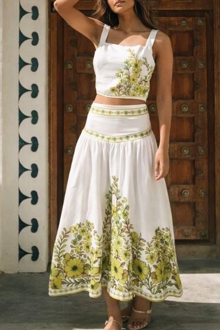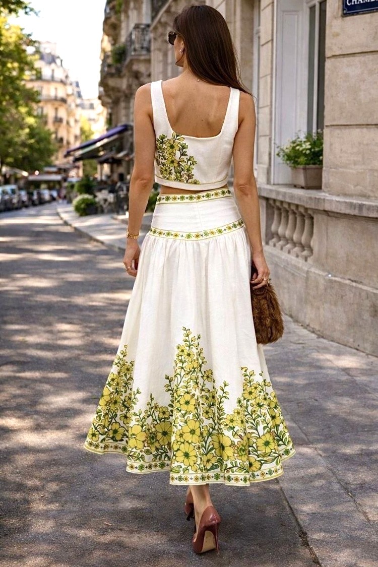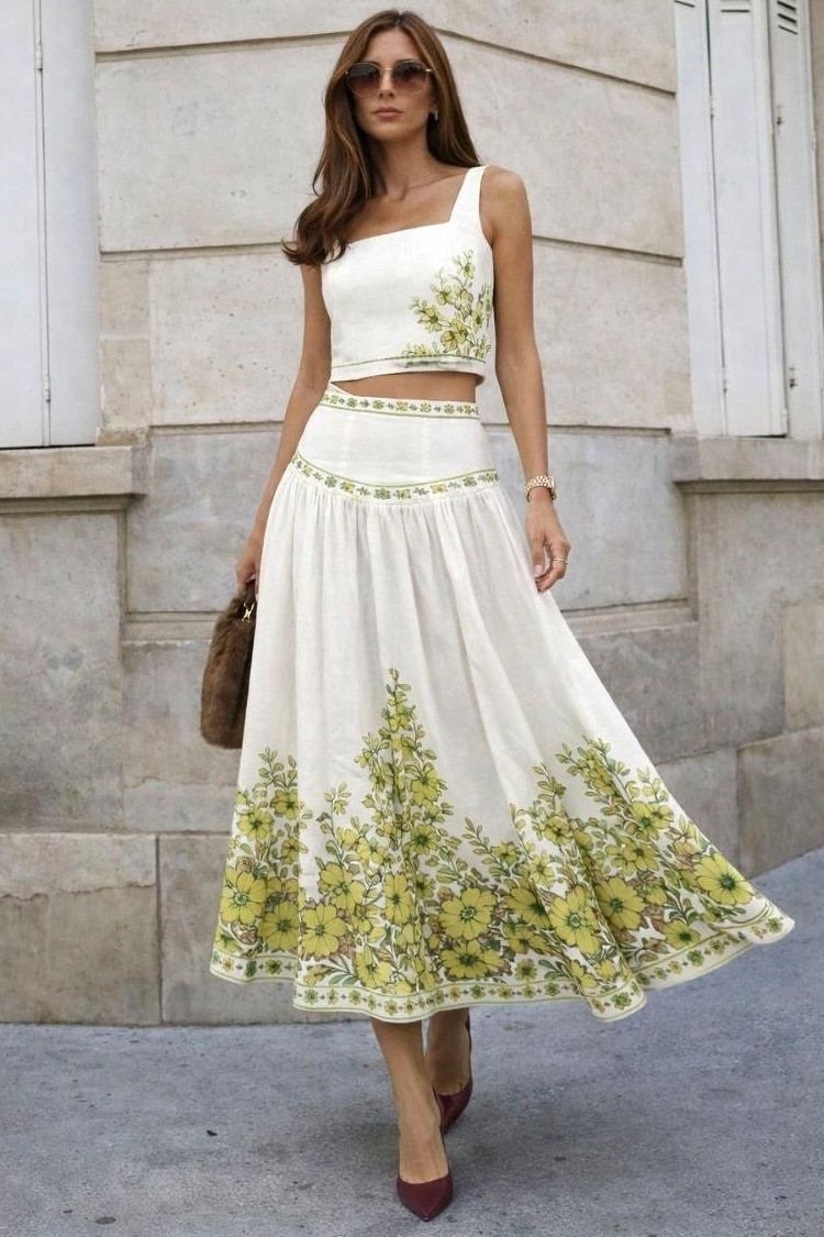 - Podkreśl swój styl dzięki temu dwuczęściowemu kompletowi – krótki top i spódnica midi z bawełny, idealne na nowoczesne i casualowe stylizacje.