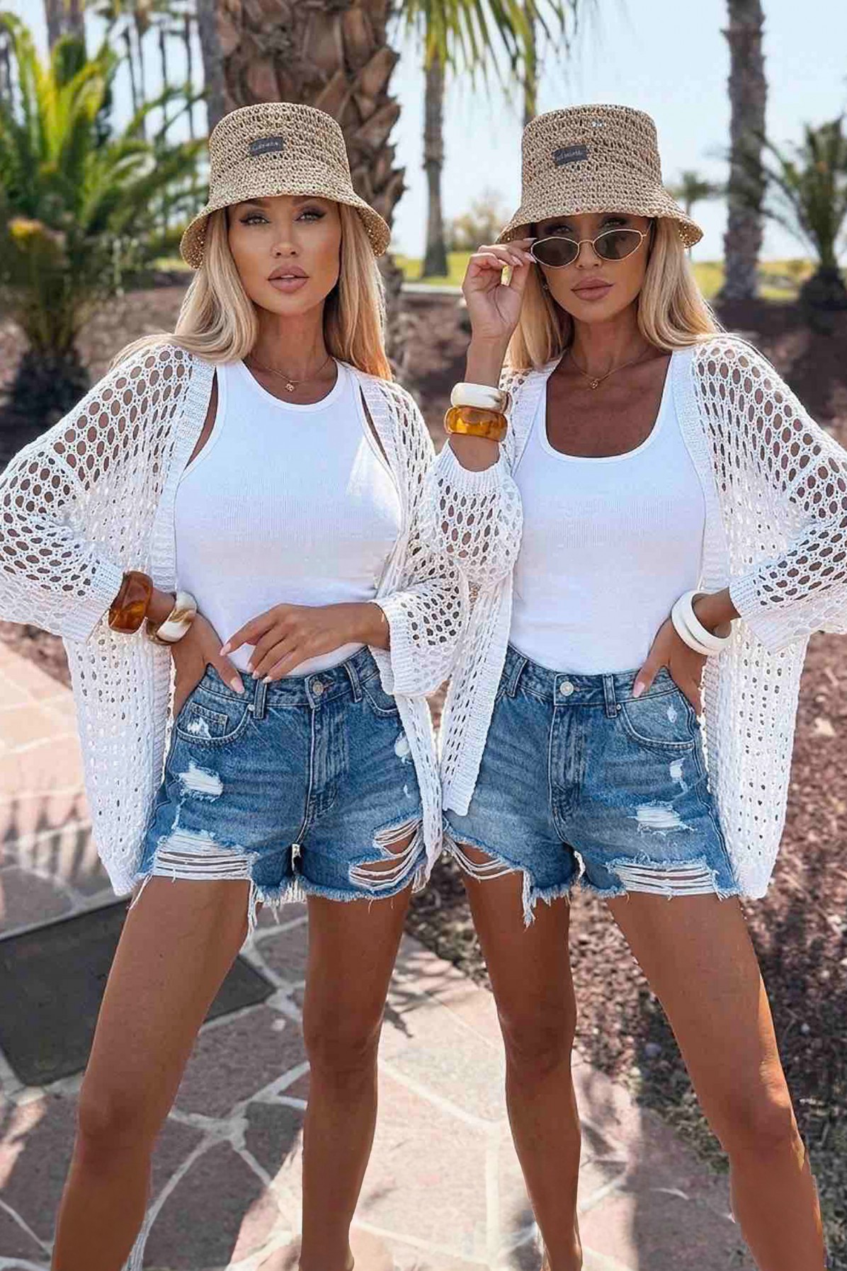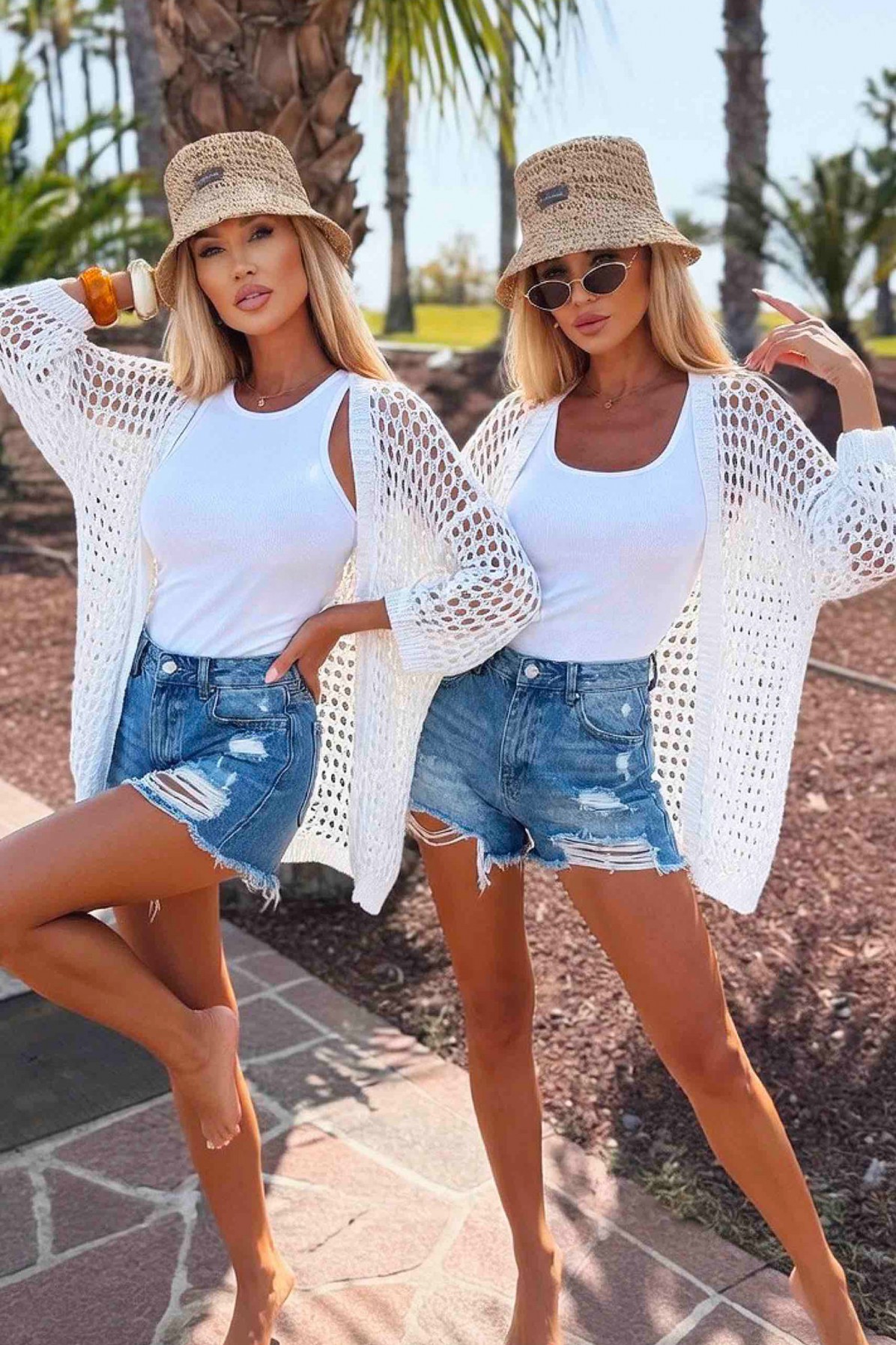 - Ekskluzywny kardigan damski z siateczki w białym kolorze – idealny do nowoczesnych i plażowych stylizacji.