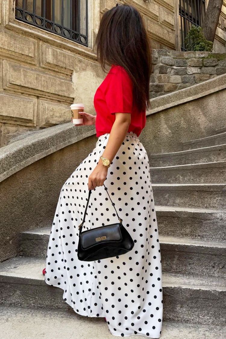 - Aby uzyskać idealny look, polecamy połączyć ją z topem, butami na niskim obcasie i elegancką torebką.