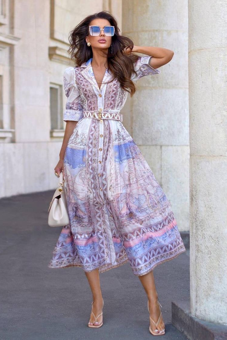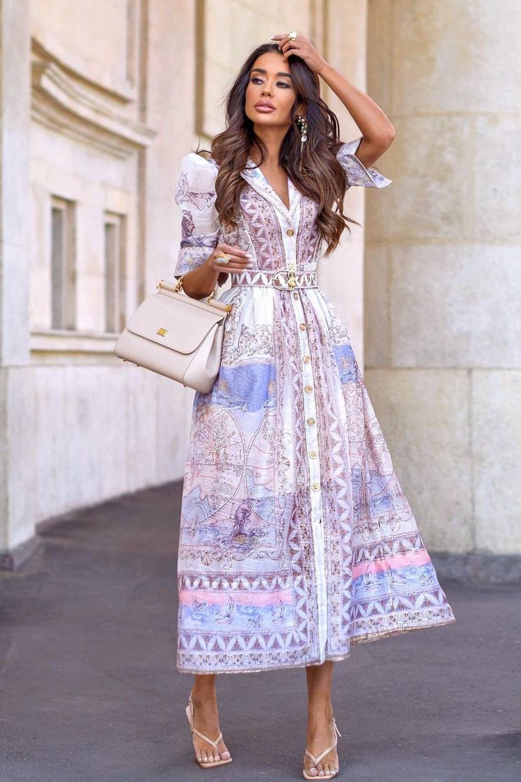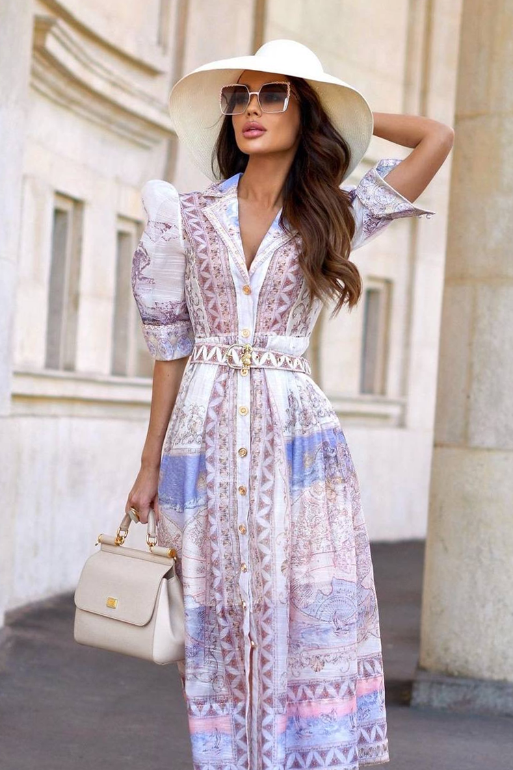 Letnia sukienka damska w stylu boho z bufiastymi rękawami CLIMENTINA
