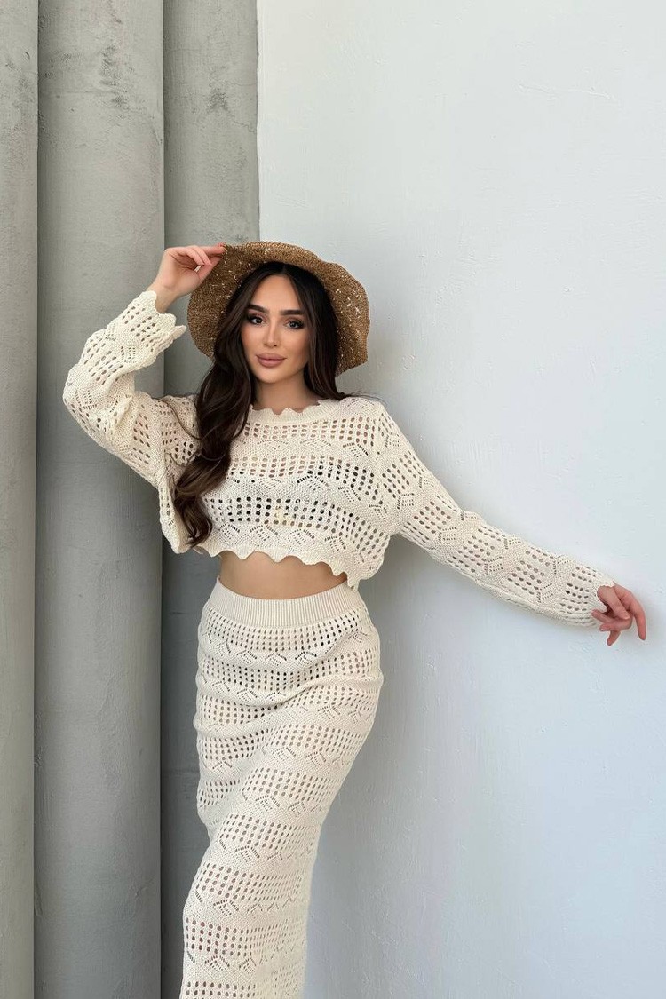 Uwodzicielski dzianinowy komplet dwuczęściowy VIKTORIA ECRU