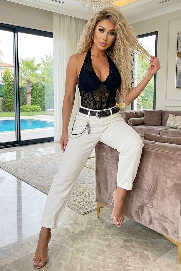 Model układa się elegancko na sylwetce, podkreślając figurę, ale nie opinając jej zbyt mocno, dzięki czemu pasuje do różnych typów sylwetek. Ciekawym akcentem jest wykończenie nogawki (podwinięcie).