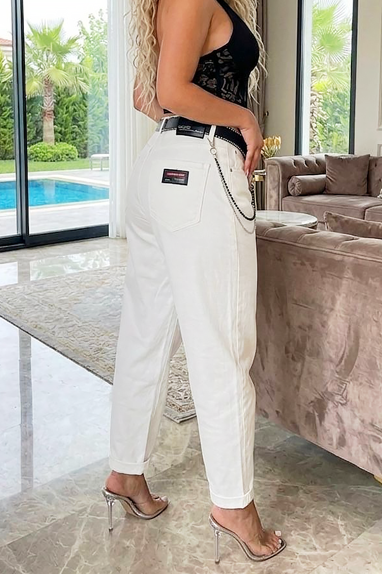 Damskie jeansy w jasnym odcieniu, stworzone dla stylowej i nowoczesnej stylizacji z lekko swobodnym, casualowym charakterem.