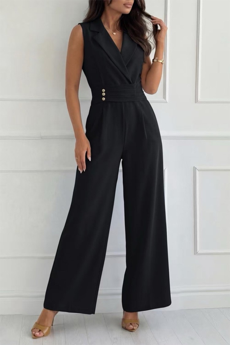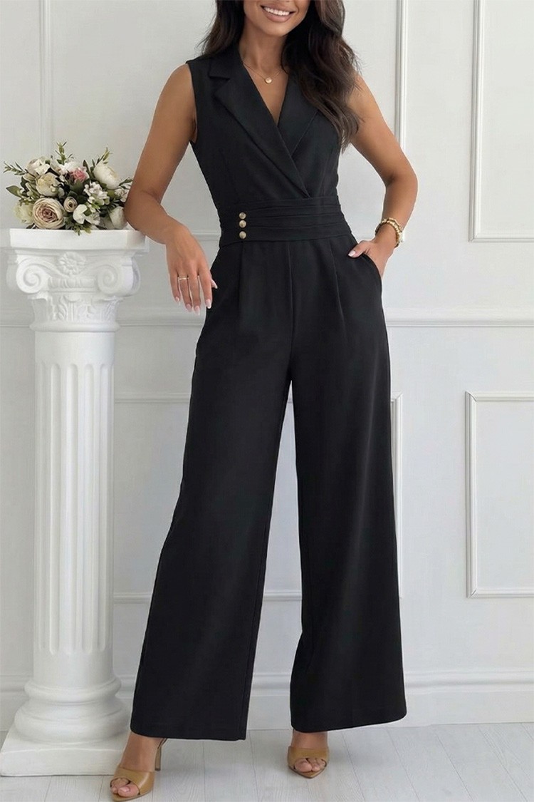 Elegancki kombinezon z klapami i złotymi guzikami SELESTE BLACK