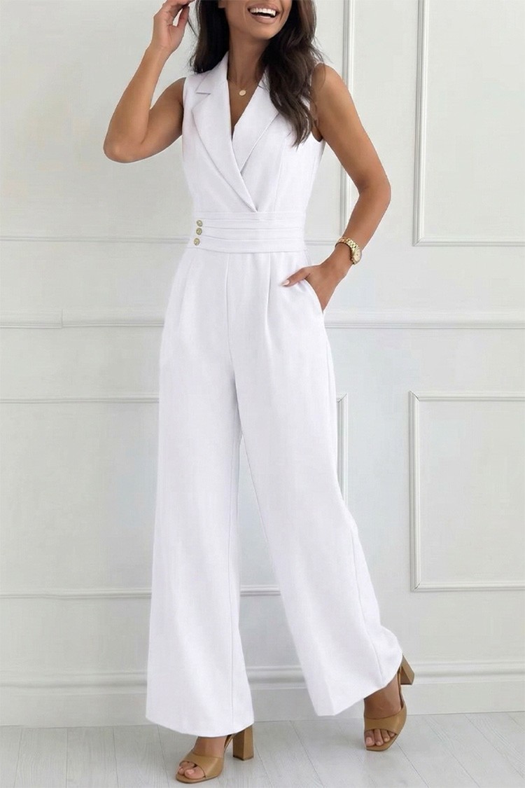 Elegancki kombinezon z klapami i złotymi guzikami SELESTE WHITE
