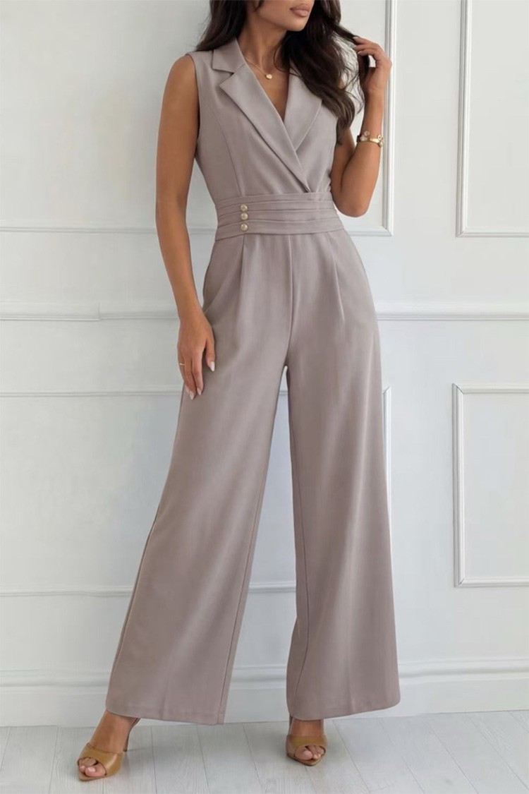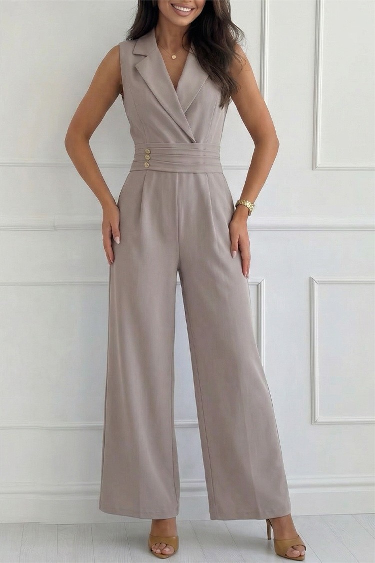 Elegancki kombinezon z klapami i złotymi guzikami SELESTE MOCHA