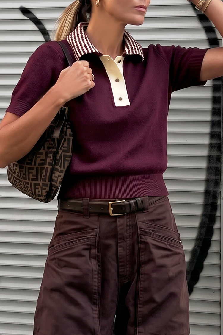 Elegancka odsłona bluzki typu polo, łącząca sportowy charakter z wyrafinowanym stylem. Model wyróżnia się kontrastowym kołnierzykiem oraz guzikami, które nadają nowoczesny, a jednocześnie klasyczny wygląd.