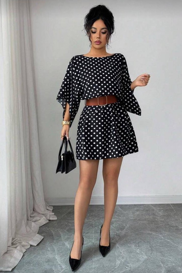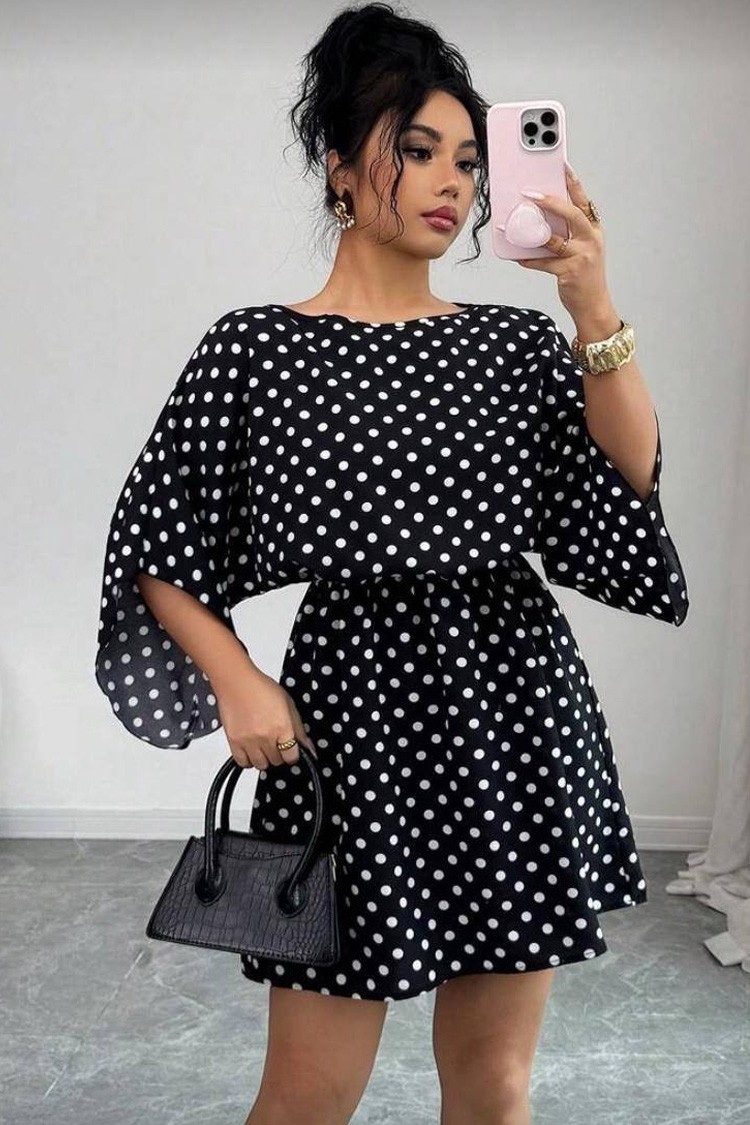 Krótka sukienka w groszki z szerokimi rękawami PETITA