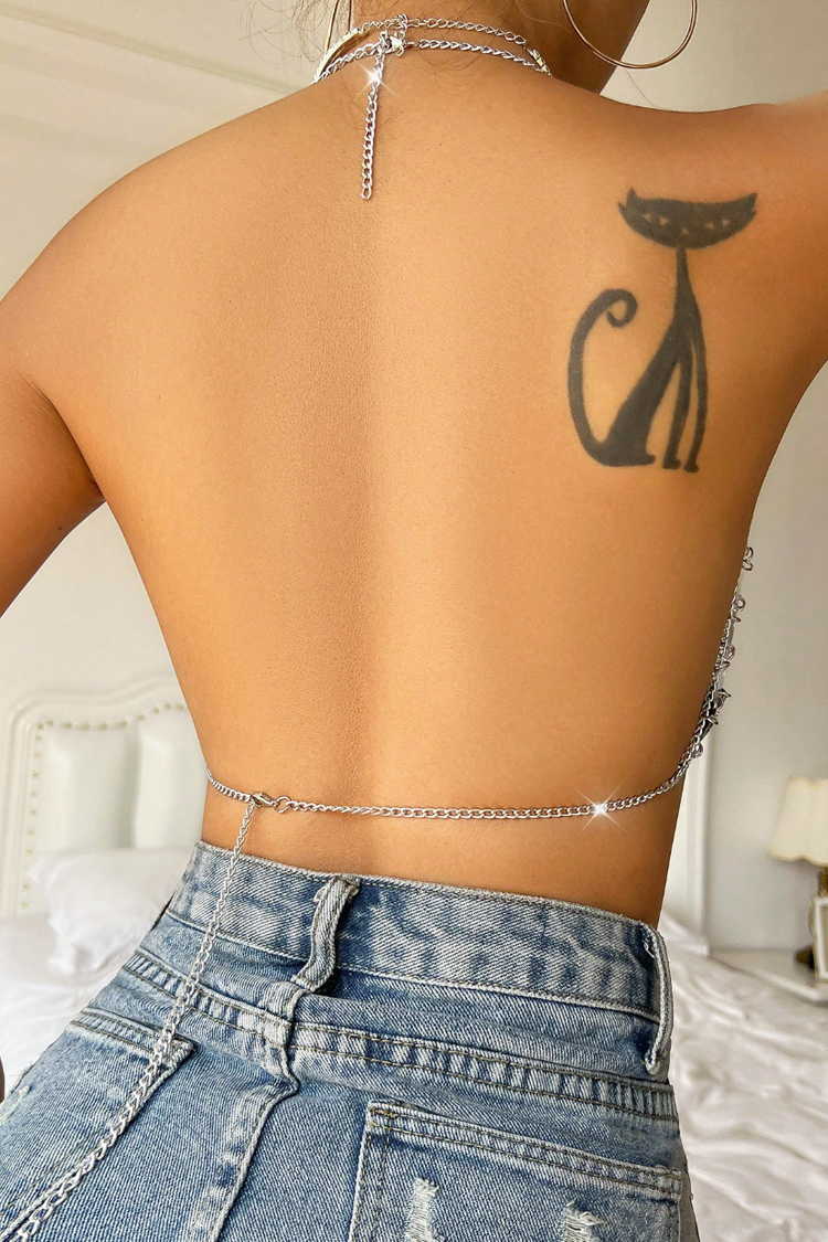 Erotyczny top z siateczki z łańcuszkami MELVORA