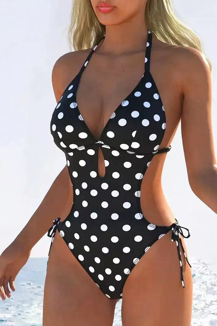 Jednoczęściowy kostium kąpielowy w groszki z wiązaniem MONZELIA