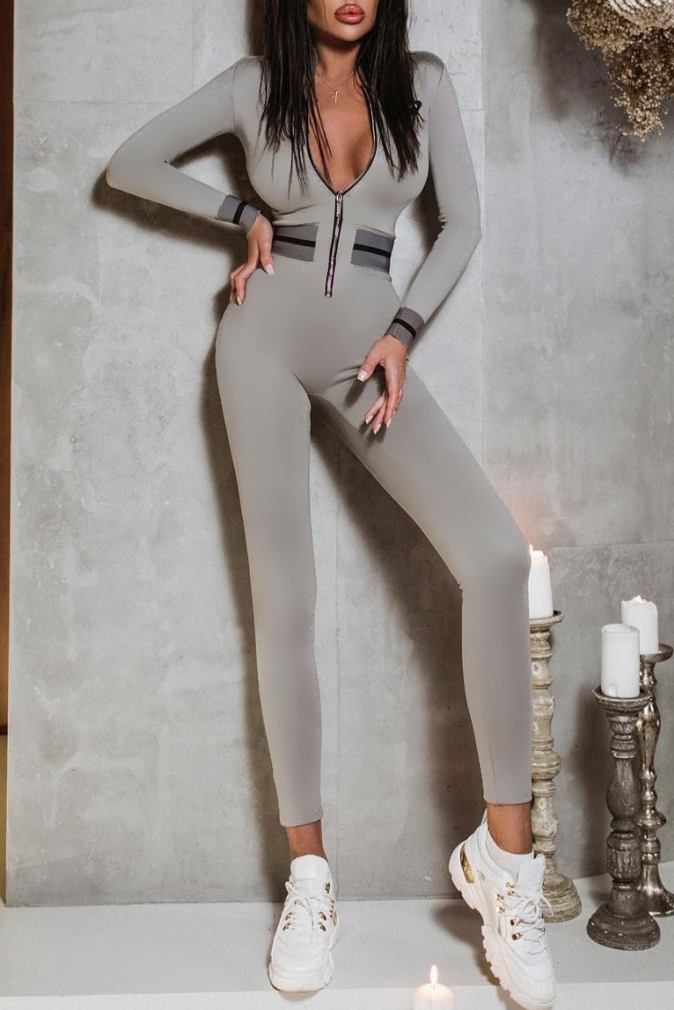 - Seksowny kombinezon w jaskrawym kolorze z metalowym zamkiem z przodu i długimi rękawami, specjalna oferta dla pań o ekstrawaganckim stylu!